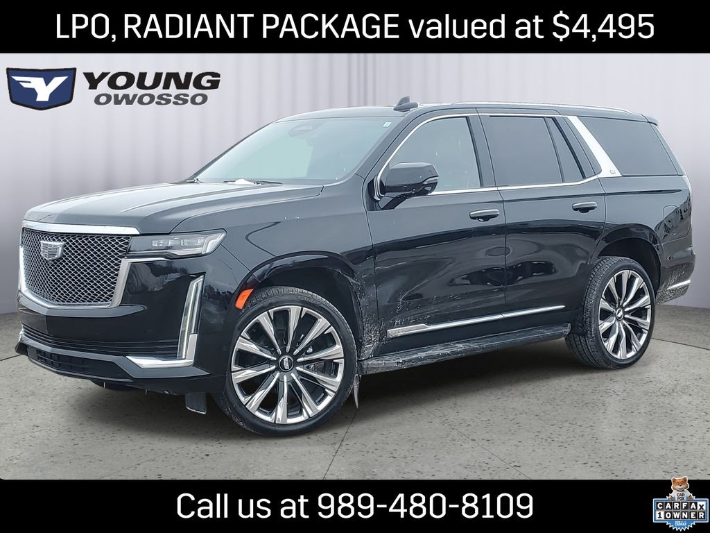 LOCAL TRADE!, CARFAX ONE OWNER!, CLEAN CARFAX!, 3RD-ROW SEATING!, Escalade Premium Luxury, 6.2L V8, AWD, Adaptive Cruise Control, AKG Studio 19-Speaker Audio System, Automatic Seat Belt Tightening, Bright Sport Mesh Grille (LPO), Door Lock & Latch Shields, Enhanced Automatic Emergency Braking, Enhanced Automatic Parking Assist, Glass Breakage Sensor, Heated & Ventilated Driver & Front Passenger Seats, Lane Change Alert w/Side Blind Zone Alert, Mechanical Limited-Slip Differential, Monochrome Cadillac Emblems (LPO), Power Panoramic Tilt-Sliding Sunroof, Preferred Equipment Group 1SB, Puddle Lamps w/Cadillac Crest (LPO), Radiant Package (LPO), Rear Camera Mirror, Rear Camera Mirror Washer, Rear Cross Traffic Alert, Reconfigurable Full-Color Head-Up Display, Reverse Automatic Braking, Running Board Assist Steps, Theft-Deterrent Alarm System, Vehicle Inclination Sensor, Vehicle Interior Movement Sensor, Wheels: 22" 12-Spoke Chrome Alloy (LPO), Wheels: 22" Interim (LPO).