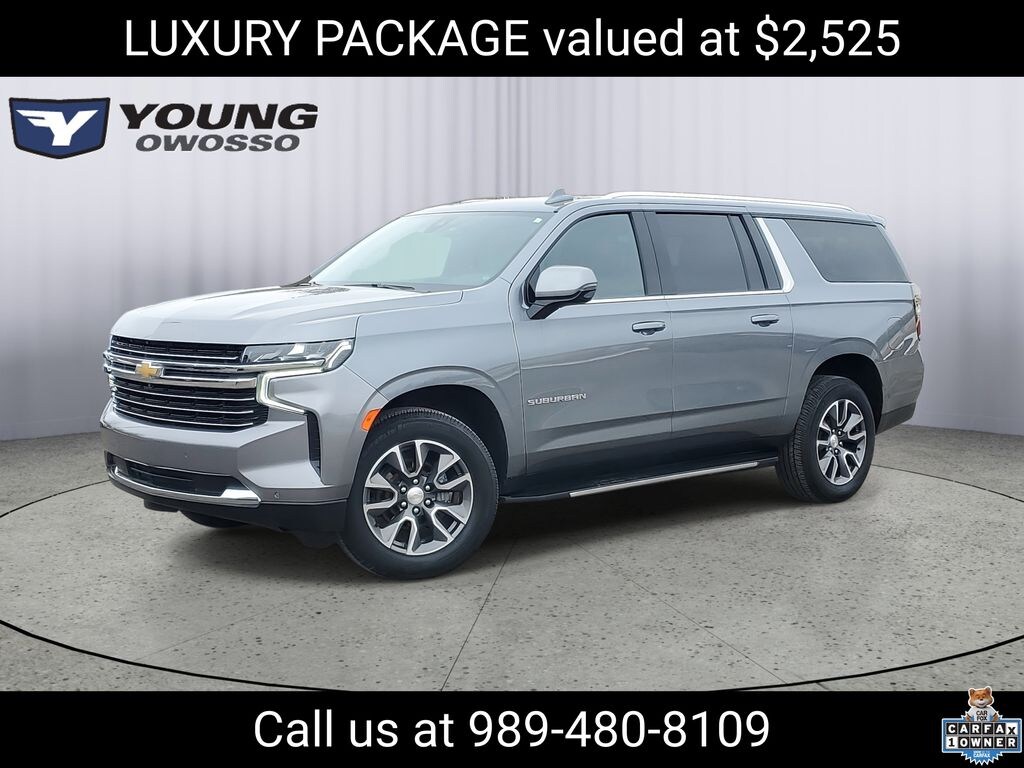 LOCAL TRADE!, 3RD-ROW SEATING!, Suburban LT, EcoTec3 5.3L V8, 4WD, 10-Way Power Driver & Passenger Seat Adjusters, 1st & 2nd Row Color-Keyed Carpeted Floor Mats, 2nd Row Pwr Release 60/40 Split-Folding Bench Seat, 3rd Row 60/40 Power-Folding Split-Bench, Auto-Dimming Inside Rear-View Mirror, Automatic Stop/Start, Bose 9-Speaker Stereo Audio System Feature, Bright Front & Rear Door Sill Plates, Color-Keyed Carpeting Floor Covering, Driver & Front Outboard Passenger Airbags, Driver Alert Package, Enhanced Driver Information Center, Floor Console w/Storage Area, Front & Rear Park Assist, Hands-Free Rear Power Programmable Liftgate, HD Surround Vision, Heated 2nd Row Outboard Seats, Heated Driver & Front Passenger Seats, Heated Steering Wheel, Infotainment Display, Lane Change Alert w/Side Blind Zone Alert, Leather-Wrapped Steering Wheel, LED Daytime Running Lamps, Luxury Package, Memory Settings, Memory Settings For Driver, Outside Heated Power-Adjustable Mirrors, Power Tilt & Telescopic Steering Column, Preferred Equipment Group 1LT, Rear Cross Traffic Alert, Rear Pedestrian Alert, Remote Start, SiriusXM Radio w/360L, Start/Stop System Disable Button, Universal Home Remote, Wireless Charging.