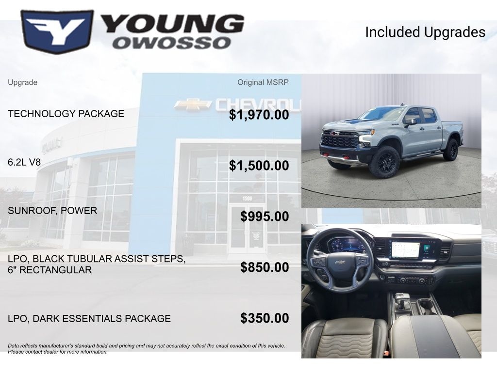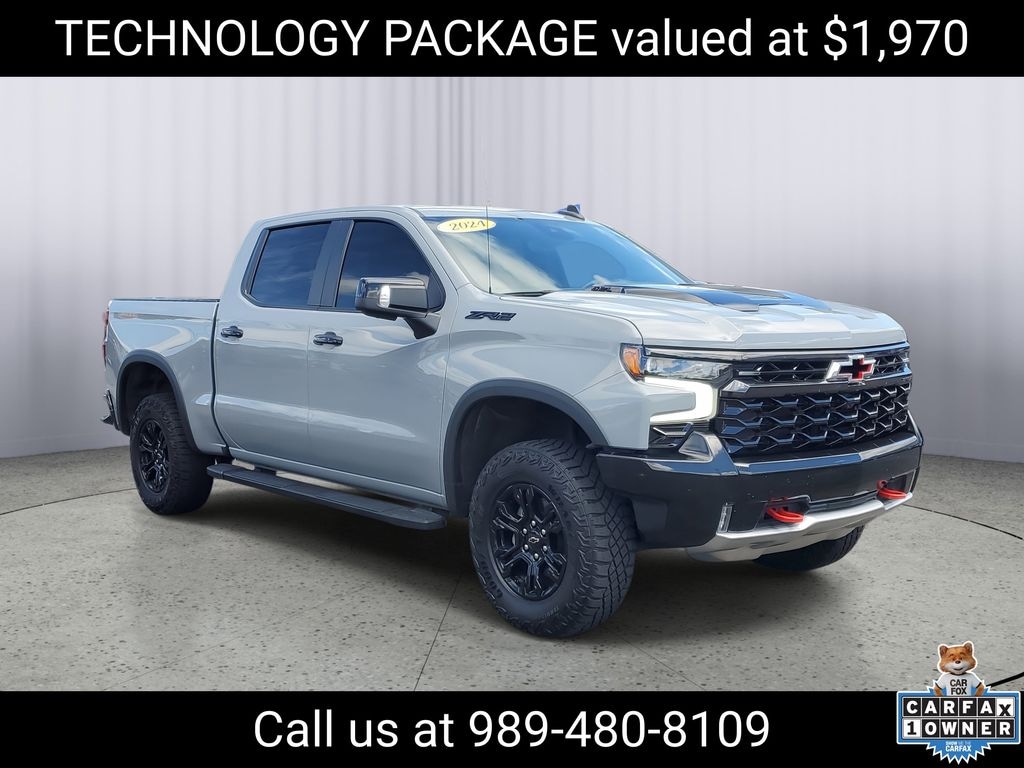 LOCAL TRADE!, CREW CAB!, EcoTec3 6.2L V8, 10-Speed Automatic, 4WD, Jet Black/Graystone Leather, 10-Way Power Driver Seat w/Lumbar, 10-Way Power Passenger Seat Adjuster w/Lumbar, 12.3" Multicolor Reconfigurable Digital Display, 120-Volt Bed Mounted Power Outlet, 120-Volt Interior Power Outlet, 15" Diagonal Multicolor Head-Up Display, 2 USB Data Ports, 2nd Row Heated Outboard Seats, Adaptive Cruise Control, All-Weather Floor Liner (LPO), Auto-Dimming Inside Rear-View Mirror, Bed View Camera, Black Name Plates (LPO), Black Tailgate CHEVROLET Lettering (LPO), Bluetooth® For Phone, Chevrolet Connected Access Capable, Chevytec Spray-On Black Bedliner, Color-Keyed Carpeting Floor Covering, Dark Essentials Package (LPO), Deep-Tinted Glass, Driver Memory, Dual Rear USB Ports (Charge Only), Electric Rear-Window Defogger, Electrical Steering Column Lock, Electronic Cruise Control, EZ Lift Power Lock & Release Tailgate, Floor Mounted Center Console, Front LED Fog Lamps, Front Rain-Sensing Wipers, HD Surround Vision, Heated Driver & Front Outboard Passenger Seats, Heated Steering Wheel, Heavy-Duty Air Filter, High Gloss Black Mirror Caps, Hill Descent Control, Hitch Guidance, Hitch Guidance w/Hitch View, In-Vehicle Trailering System App, Integrated Trailer Brake Controller, Keyless Open & Start, LED Cargo Area Lighting, Manual Tilt/Telescoping Steering Column, OnStar & Chevrolet Connected Services Capable, Outside Heated Power-Adjustable Mirrors, Performance Red Recovery Hooks, Perimeter Lighting, Power Front Passenger Windows w/Express Up/Down, Power Front Windows w/Driver Express Up/Down, Power Rear Windows w/Express Down, Power Sliding Rear Window w/Rear Defogger, Power Tilt & Telescoping Steering Column, Preferred Equipment Group 3LT, Rear Camera Mirror, Rear Cross Traffic Braking, Rear Park Assist, Rear Pedestrian Alert, Rear Wheelhouse Liners, Remote Vehicle Starter System, Safety Alert Seat, SiriusXM w/360L, Standard Tailgate, Steering Wheel Audio Controls, Technology Package, Theft Deterrent System (Unauthorized Entry), Trailer Camera Provisions, Trailer Side Blind Zone Alert, Trailering Package, Universal Home Remote, Up-Level Rear Seat w/Storage Package, Ventilated Driver & Front Passenger Seats, Wi-Fi Hot Spot Capable, Wrapped Steering Wheel, ZR2 Suspension Package.