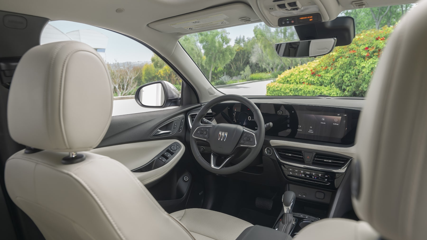 Sit behind the wheel of the 2024 Buick Encore and enjoy a stylish cabin that offers plenty of high-end finishes. The Buick Encore is equipped with high quality materials, including the digital dashboard dominating the interior. The Buick Encore's steering wheel features the redesigned three shield Buick logo. You'll enjoy maximum comfort with plenty the lumbar-support front seats. Sit back and enjoy your rides around East Lansing that includes plenty of legroom for rear passengers and a plenty of cargo space. The increased cargo space in the 2024 Buick Encore is increased by a 40/60 fold flat front passenger seat.