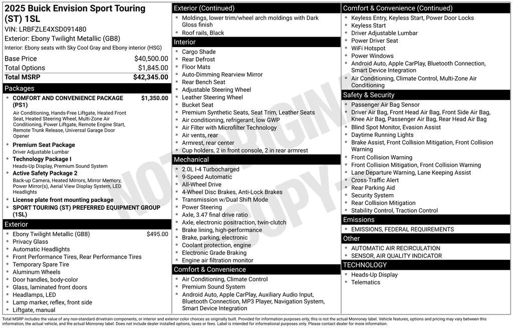 Researched 6 different competing compact luxury SUVs. Kept coming back to the Buick Envision Avenir. It looks great, descent gas mileage, nice interior, has quiet tuning and rides well. All at a lower price than the German alternatives. Built on a Cadillac XT4 frame and suspension with enhancements. It also received the Cadillac 2.0 L Turbo engine and 9 speed transmission that always puts the engine in the sweet spot of its torque curve. Also uses regular gas. A pleasure to drive. Buick hit a home run with this car.…
