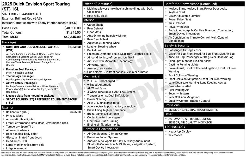 Brilliant Red 2025 Buick Envision Sport Touring AWD 9-Speed Automatic 2.0L Turbocharged