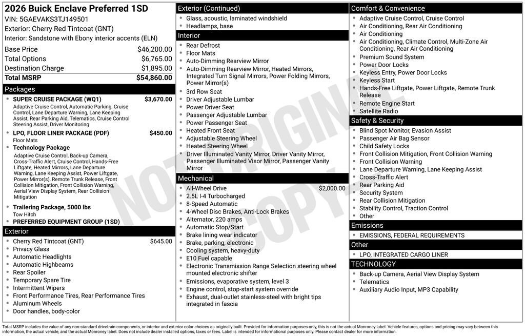 cherry red tintcoat 2026 Buick Enclave Preferred AWD 8-Speed Automatic 2.5L DOHC AWD.