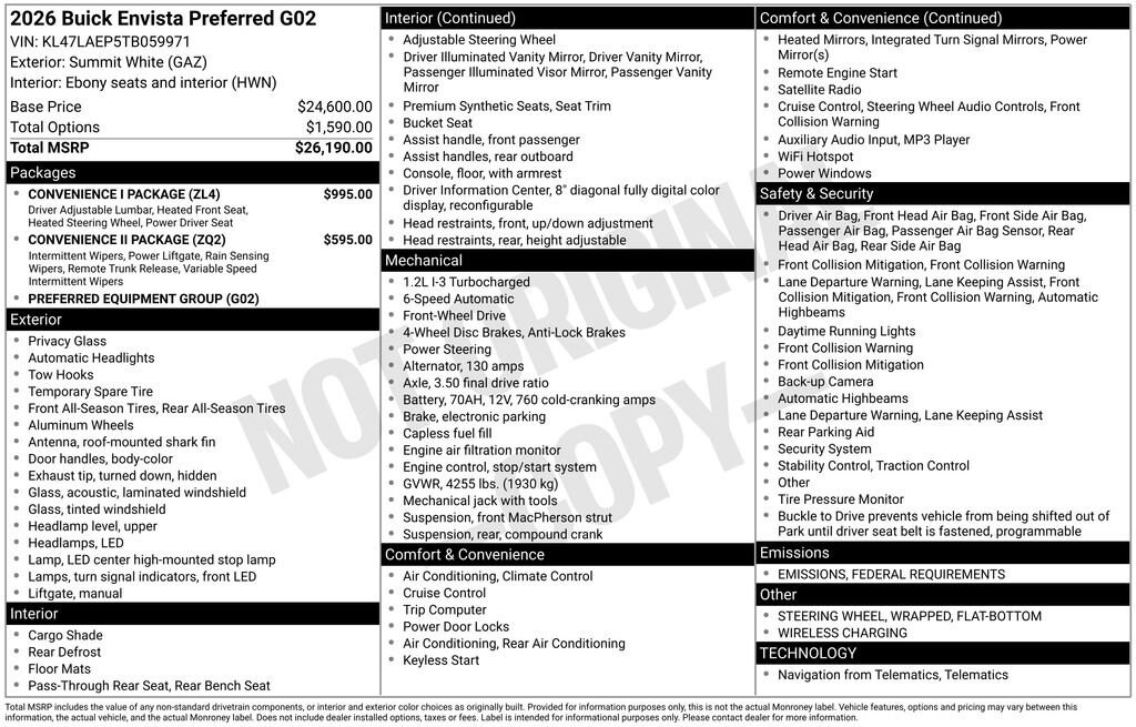 Summit White 2026 Buick Envista Preferred FWD 6-Speed Automatic ECOTEC 1.2L Turbo