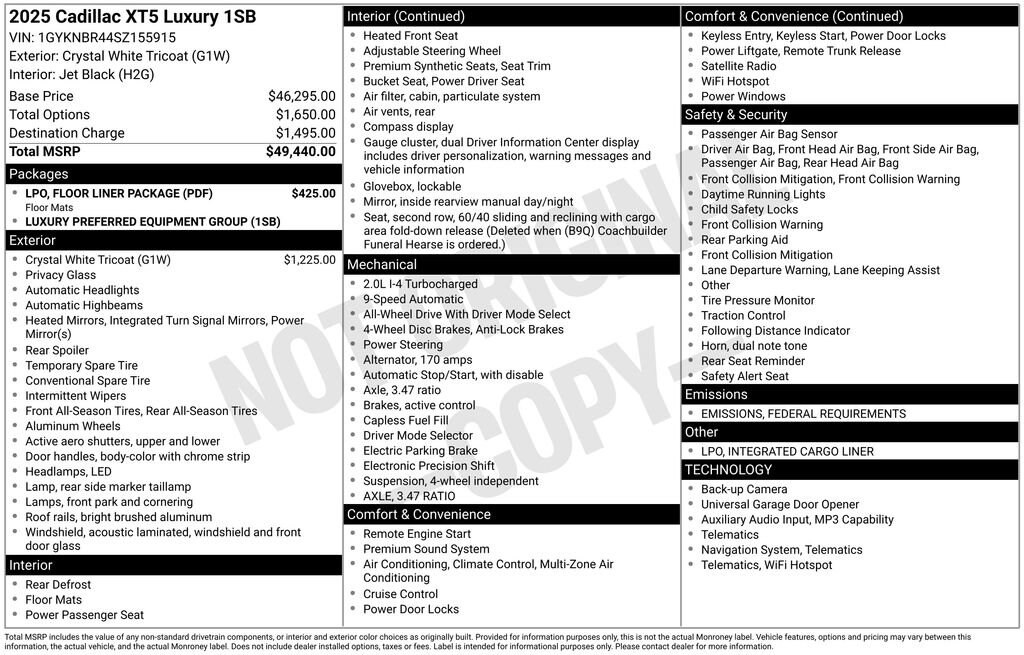 - $500 Purchase Allowance on this 2025 Cadillac XT5 modelDetails
