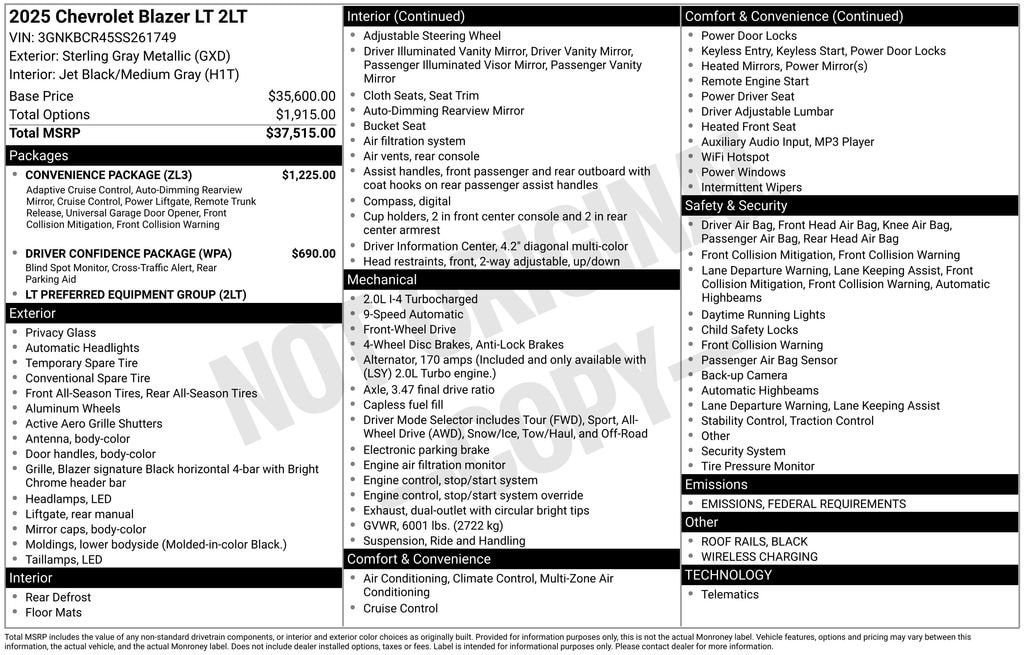 Sterling Gray Metallic 2025 Chevrolet Blazer LT FWD 9-Speed Automatic with Overdrive 2.0L Turbocharged