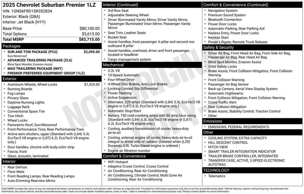 Black 2025 Chevrolet Suburban Premier 4WD 10-Speed Automatic with Overdrive EcoTec3 5.3L V8