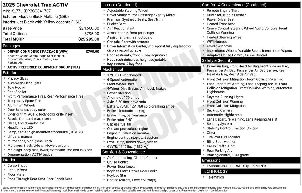 Mosaic Black Metallic 2025 Chevrolet Trax ACTIV FWD 6-Speed Automatic 1.2L Ecotec Turbo DOHC DI w/VVT