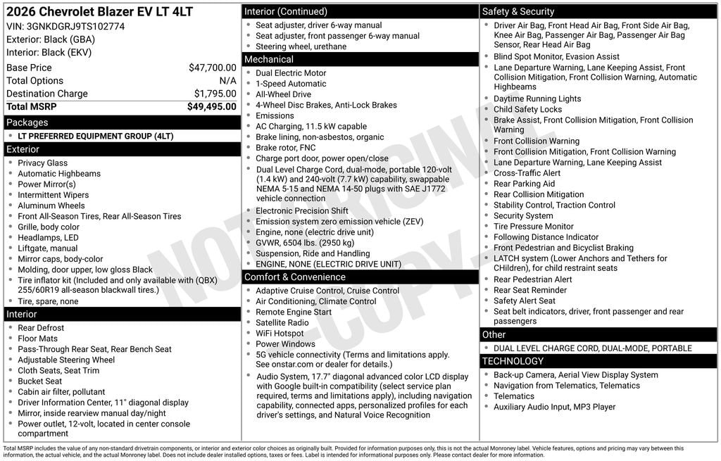 Black 2026 Chevrolet Blazer EV LT AWD 1-Speed Automatic Electric Motor