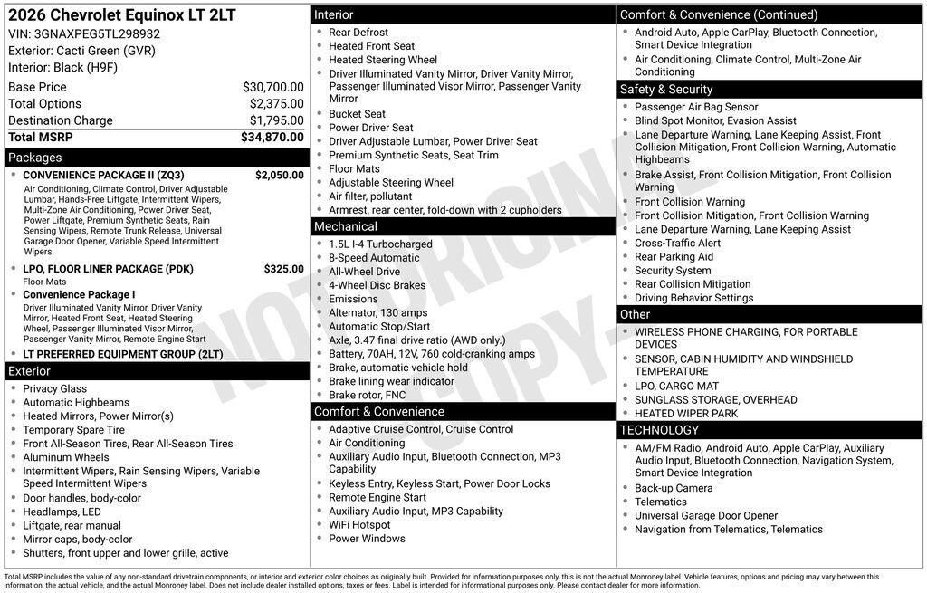 Cacti Green 2026 Chevrolet Equinox LT AWD 8-Speed Automatic 1.5L DOHC AWD.