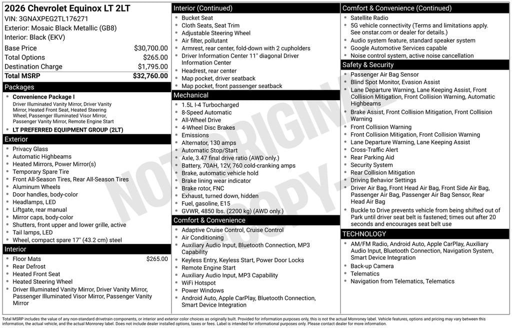 Mosaic Black Metallic 2026 Chevrolet Equinox LT AWD 8-Speed Automatic 1.5L DOHC AWD.24/29 City/Highway MPG