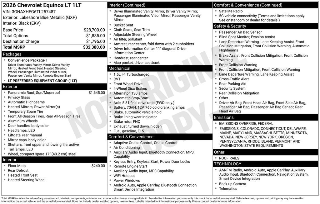 Lakeshore Blue Metallic 2026 Chevrolet Equinox LT FWD CVT 1.5L DOHC