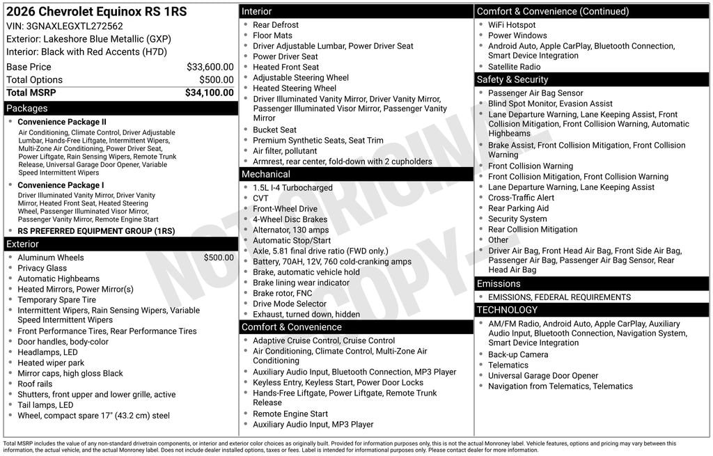 Lakeshore Blue Metallic 2026 Chevrolet Equinox RS FWD CVT 1.5L DOHC