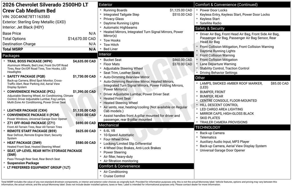 Sterling Gray Metallic 2026 Chevrolet Silverado 2500HD LT 4WD 10-Speed Automatic 6.6L V8 10-Speed Automatic, 4WD, Jet Black Cloth.