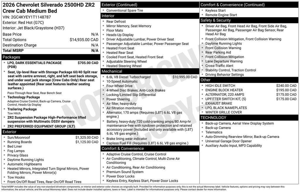 Red Hot 2026 Chevrolet Silverado 2500HD ZR2 4WD 10-Speed Automatic Duramax 6.6L V8 Turbodiesel 10-Speed Automatic, 4WD, Gray Leather.