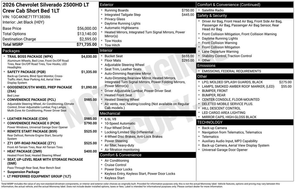Sterling Gray Metallic 2026 Chevrolet Silverado 2500HD LT 4WD 10-Speed Automatic 6.6L V8 10-Speed Automatic, 4WD, Jet Black Leather.