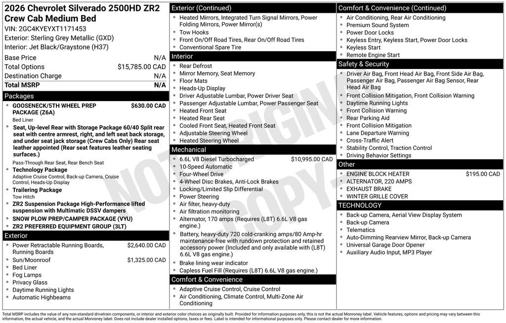 Sterling Gray Metallic 2026 Chevrolet Silverado 2500HD ZR2 4WD 10-Speed Automatic Duramax 6.6L V8 Turbodiesel 10-Speed Automatic, 4WD, Jet Black/Graystone Leather.Recent Arrival!