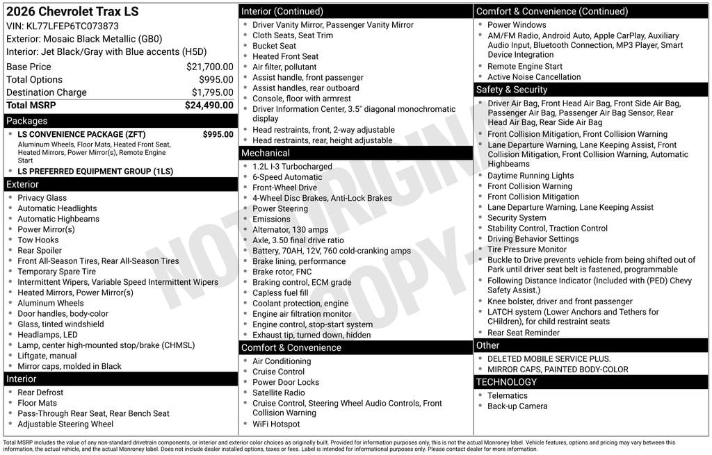 Mosaic Black Metallic 2026 Chevrolet Trax LS FWD 6-Speed Automatic ECOTEC 1.2L Turbo
