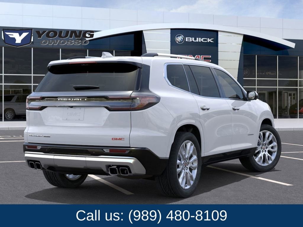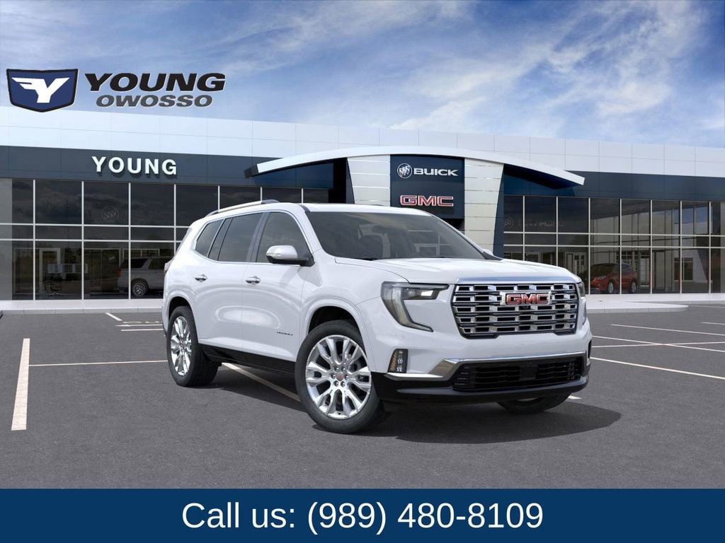 Glacier White Tricoat 2026 GMC Acadia Denali AWD 8-Speed Automatic 2.5L DOHC AWD, Sheer / Dark Atmosphere Leather.