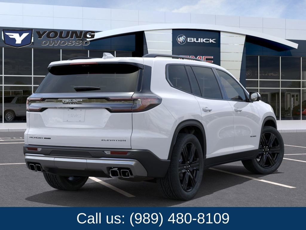 Summit White 2026 GMC Acadia Elevation AWD 8-Speed Automatic 2.5L DOHC AWD, After Dark Cloth.
