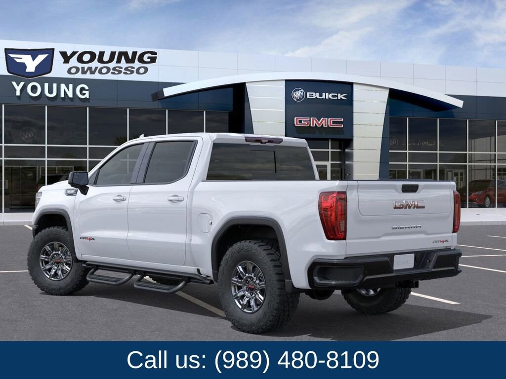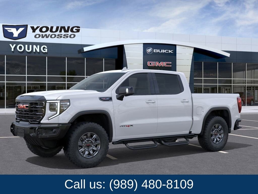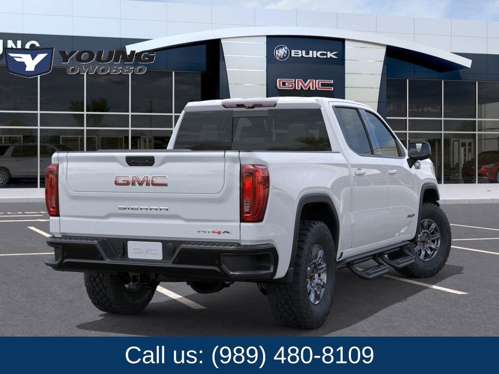 Summit White 2026 GMC Sierra 1500 AT4X 4WD 10-Speed Automatic EcoTec3 6.2L V8 10-Speed Automatic, 4WD, Obsidian Rush Leather.
