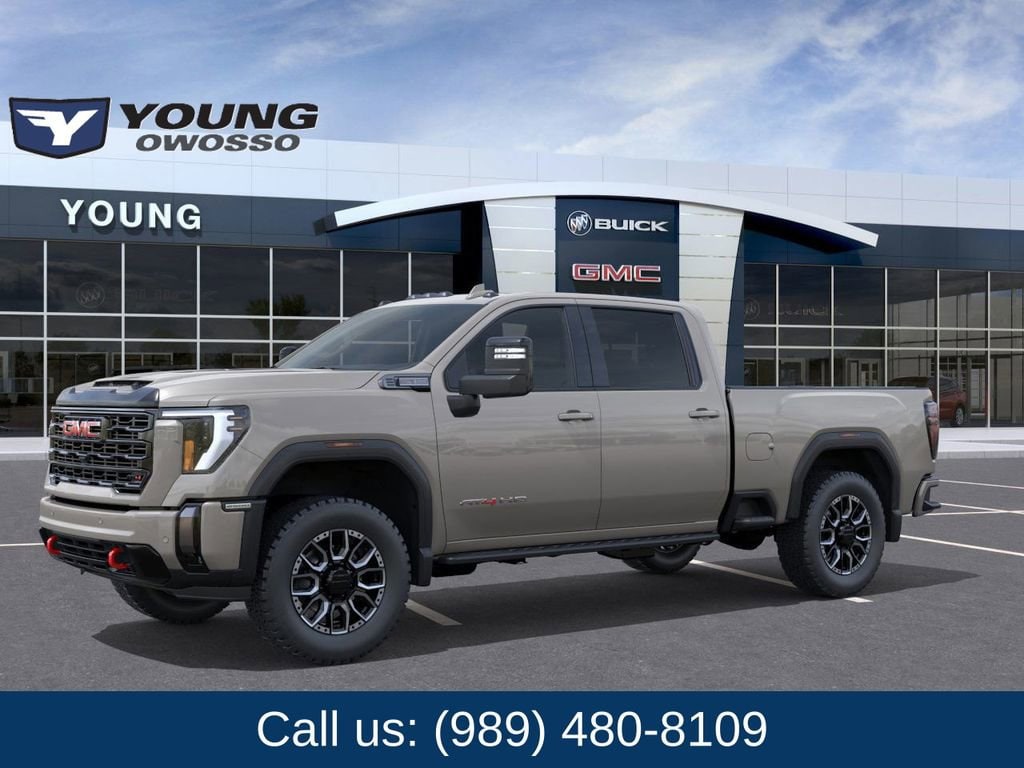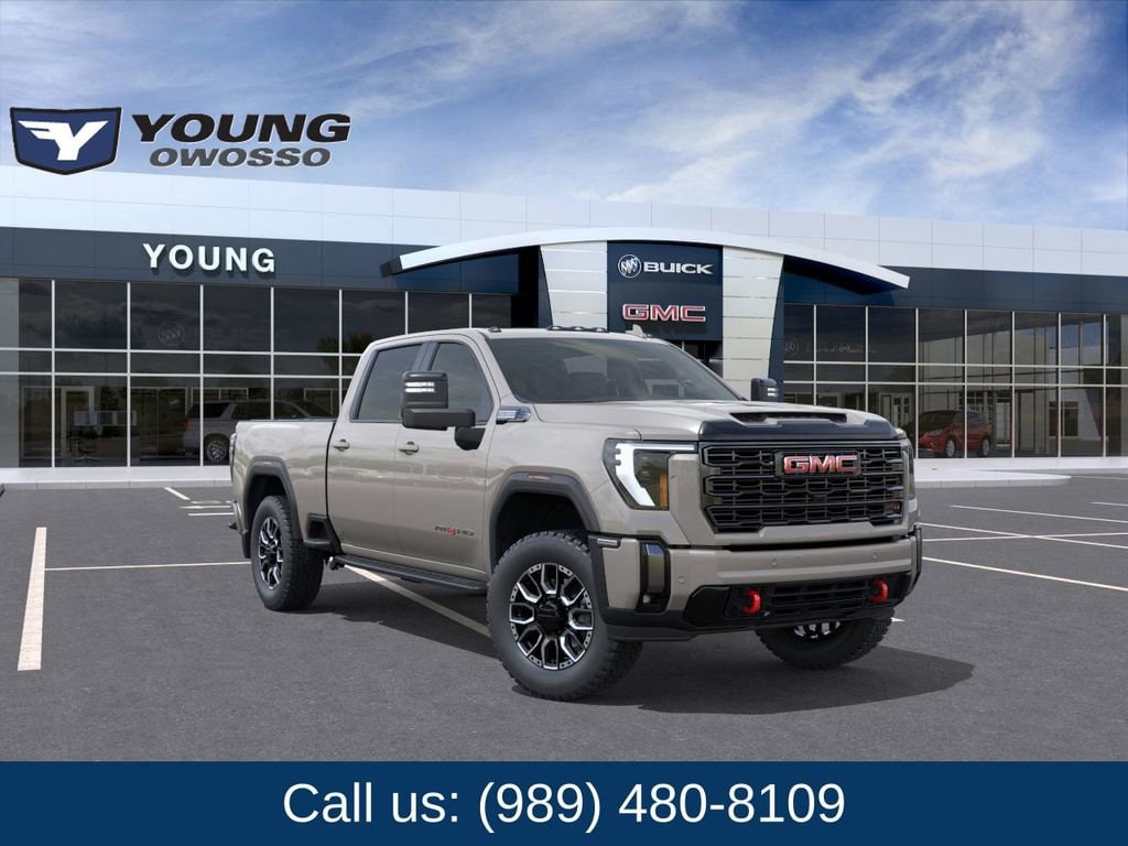 Coastal Dune 2026 GMC Sierra 2500HD AT4 4WD 10-Speed Automatic 6.6L V8 10-Speed Automatic, 4WD, Jet Black With Kalahari Accents Leather.
