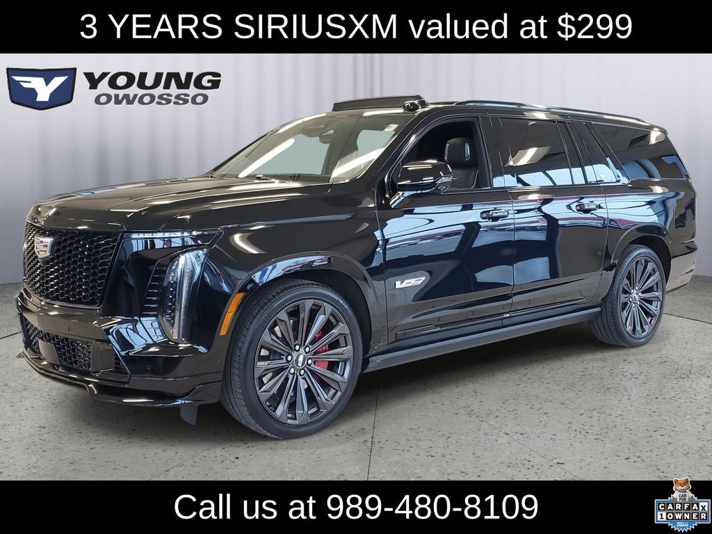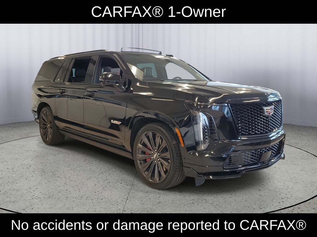 Escalade ESV V-Series, 6.2L V8 Supercharged, AWD, Air Ride Adaptive Suspension, AKG Studio Reference 36-Speaker Audio System, Blind Zone Steering Assist with Trailering, Door Lock and Latch Shields, Electronic Limited-Slip Differential, Glass Breakage Sensor, Heated and Ventilated Driver and Front Passenger Seats, Hitch Guidance with Hitch View, Illuminating Front and Rear Sill Plates, Integrated Trailer Brake Controller, Magnetic Ride Control Suspension, Next Generation Active Noise Cancellation, Night Vision, Platinum Interior Trim, Power Lumbar Massage Driver Seat, Power Lumbar Massage Front Passenger Seat, Power Open/Close Doors, Power Panoramic Tilt-Sliding Sunroof, Power-Retractable Assist Steps, Preferred Equipment Group 1SD, Rear Seat Entertainment System, Reconfigurable Full-Color Head-Up Display, Smart Trailer Integration Indicator, Soft Closing Front and Rear Doors, Theft-Deterrent Alarm System, Touring Package, Trailering App, Trailering Assist Guidelines, Vehicle Inclination Sensor, Vehicle Interior Movement Sensor, Wheel Locks, Wheels: 24" Split 6-Spoke Alloy.