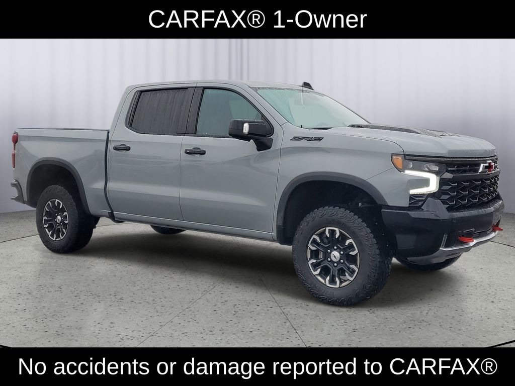 LOCAL TRADE!, CARFAX ONE OWNER!, CLEAN CARFAX!, CREW CAB!, 4WD, Silverado 1500 ZR2, EcoTec3 6.2L V8, 4WD, 10-Way Power Driver Seat w/Lumbar, 10-Way Power Passenger Seat Adjuster w/Lumbar, 12.3" Multicolor Reconfigurable Digital Display, 120-Volt Bed Mounted Power Outlet, 120-Volt Interior Power Outlet, 2 USB Data Ports, 2nd Row Heated Outboard Seats, All-Weather Floor Liner (LPO), Auto-Dimming Inside Rear-View Mirror, Bed View Camera, Black Name Plates (LPO), Black Tailgate CHEVROLET Lettering (LPO), Bluetooth® For Phone, Chevrolet Connected Access Capable, Chevytec Spray-On Black Bedliner, Color-Keyed Carpeting Floor Covering, Dark Essentials Package (LPO), Deep-Tinted Glass, Driver Memory, Dual Rear USB Ports (Charge Only), Electric Rear-Window Defogger, Electrical Steering Column Lock, Electronic Cruise Control, EZ Lift Power Lock & Release Tailgate, Floor Mounted Center Console, Front LED Fog Lamps, Front Rain-Sensing Wipers, HD Surround Vision, Heated Driver & Front Outboard Passenger Seats, Heated Steering Wheel, Heavy-Duty Air Filter, High Gloss Black Mirror Caps, Hill Descent Control, Hitch Guidance, Hitch Guidance w/Hitch View, In-Vehicle Trailering System App, Integrated Trailer Brake Controller, Keyless Open & Start, LED Cargo Area Lighting, Manual Tilt/Telescoping Steering Column, OnStar & Chevrolet Connected Services Capable, Outside Heated Power-Adjustable Mirrors, Performance Red Recovery Hooks, Perimeter Lighting, Power Front Passenger Windows w/Express Up/Down, Power Front Windows w/Driver Express Up/Down, Power Rear Windows w/Express Down, Power Sliding Rear Window w/Rear Defogger, Preferred Equipment Group 3LT, Rear Cross Traffic Braking, Rear Park Assist, Rear Pedestrian Alert, Rear Wheelhouse Liners, Remote Vehicle Starter System, Safety Alert Seat, SiriusXM w/360L, Standard Tailgate, Steering Wheel Audio Controls, Theft Deterrent System (Unauthorized Entry), Trailer Camera Provisions, Trailer Side Blind Zone Alert, Trailering Package, Universal Home Remote, Up-Level Rear Seat w/Storage Package, Ventilated Driver & Front Passenger Seats, Wi-Fi Hot Spot Capable, Wrapped Steering Wheel, ZR2 Suspension Package.