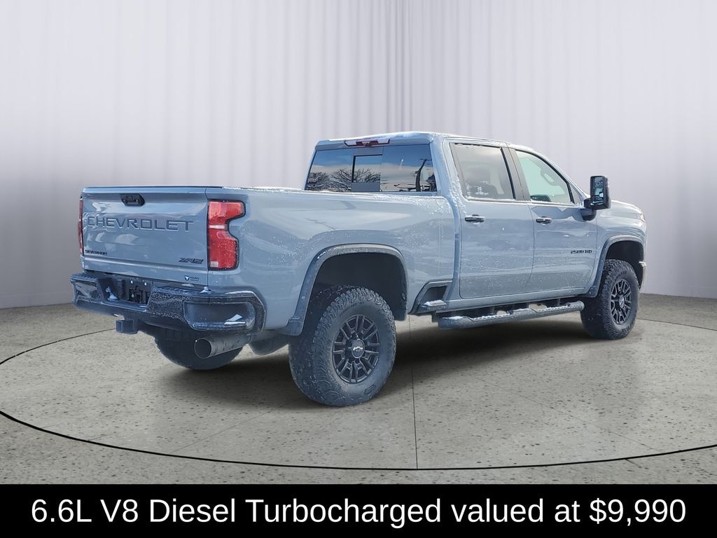LOCAL TRADE!, CARFAX ONE OWNER!, CLEAN CARFAX!, 4WD, Duramax 6.6L V8 Turbodiesel, 10-Speed Automatic, 4WD, Jet Black/Graystone Leather, 120-Volt Bed Mounted Power Outlet, 120-Volt Interior Power Outlet, 15" Diagonal Multicolor Head-Up Display, 170 Amp Alternator, 3.73 Rear Axle Ratio, Adaptive Cruise Control, All-Weather Floor Liners, Auto-Dimming Inside Rear-View Mirror, Bed View Camera with Two Trailer Camera Provisions, Black Chevytec Spray-on Bedliner, Black Name Plates, Black Tailgate Lettering, Bluetooth® For Phone, Chevrolet Connected Access Capable, Color-Keyed Carpeting Floor Covering, Compass, Dark Essentials Package, Deep-Tinted Glass, Durabed Pickup Bed, Electric Rear-Window Defogger, Electronic Cruise Control with Set and Resume Speed, Front Bucket Seats, Front LED Fog Lamps, Front Rain-Sensing Wipers, Heated 2nd Row Outboard Seats, Heated Steering Wheel, High Gloss Black Mirror Caps, Hitch Guidance with Hitch View, in-Vehicle Trailering App System, Keyless Open and Start, LED Cargo Area Lighting, LED Smoked Amber Roof Marker Lamps, Manual Tilt and Telescoping Steering Column, OnStar Services Capable, Perforated Leather Seat Trim, Power Door Locks, Power Front Windows with Driver Express Up/Down, Power Front Windows with Passenger Express Up/Down, Power Rear Windows with Express Down, Power Sliding Rear Window with Defogger, Power Up/Down Tailgate Function with Power Lock and Release, Preferred Equipment Group 3LT, Push Button Start, Rear Camera Mirror, Rear Cross Traffic Alert, Rear Wheelhouse Liners, Remote Vehicle Starter System, SiriusXM with 360L Trial Subscription, Standard Tailgate, Steering Wheel Audio Controls, Technology Package, Trailer Camera Provisions, Ultrasonic Front and Rear Park Assist, Unauthorized Entry Theft-Deterrent System, Universal Home Remote, Up-Level Rear Seat with Storage Package, Wi-Fi Hotspot Capable, Wireless Charging, Wireless Phone Projection, Wrapped Steering Wheel, ZR2 Suspension Package.