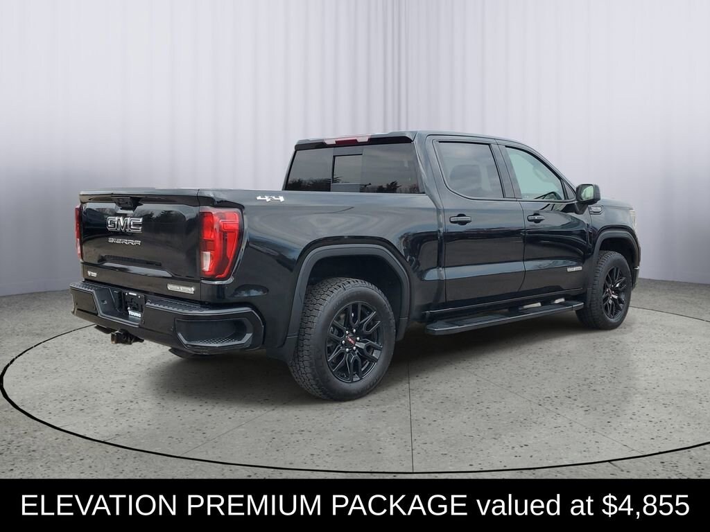 LOCAL TRADE!, CARFAX ONE OWNER!, CLEAN CARFAX!, Sierra 1500 Elevation, 4D Crew Cab, EcoTec3 5.3L V8, 4WD, Black Leather, 120-Volt Bed Mounted Power Outlet, 120-Volt Interior Power Outlet, 2 Charge/Data USB Ports, 2 Type-C Charge-Only Rear USB Ports, 6-Speaker Audio System Feature, Adaptive Cruise Control, All-Weather Floor Liner (LPO), Auto-Locking Rear Differential, Body Color Header w/Gloss Black Mesh Grille Bars, Cloth Rear Seat w/Storage Package, Color-Keyed Carpeting Floor Covering, Deep-Tinted Glass, Electric Rear-Window Defogger, Elevation Premium Package, Front Frame-Mounted Black Recovery Hooks, Front Rubberized-Vinyl Floor Mats, GMC Connected Access Capable, HD Rear Vision Camera, HD Surround Vision, High Capacity Suspension Package, High Gloss Black Mirror Caps, Hitch Guidance, Hitch View, In-Vehicle Trailering System App, Integrated Trailer Brake Controller, Keyless Open & Start, Lane Keep Assist w/Lane Departure Warning, Leather-Appointed Seat Trim, LED Cargo Area Lighting, Manual Tilt-Wheel & Telescoping Steering Column, OnStar & GMC Connected Services Capable, Perimeter Lighting, Power Door Locks, Power Front Windows w/Driver Express Up/Down, Power Front Windows w/Passenger Express Down, Power Rear Windows w/Express Down, Power Sliding Rear Window w/Rear Defogger, Preferred Equipment Group 3SB, Preferred Package, Premium Bose 7-Speaker Sound System, Push Button Start, Rear Cross Traffic Braking, Rear Pedestrian Detection, Rear Rubberized-Vinyl Floor Mats, Rear Wheelhouse Liners, Remote Vehicle Starter System, Sierra Safety Plus Package, SiriusXM w/360L, Spray-On Pickup Bedliner w/GMC Logo, Steering Wheel Audio Controls, Theft Deterrent System (Unauthorized Entry), Trailer Camera Provisions, Trailer Side Blind Zone Alert, Trailering Package, Ultrasonic Front & Rear Park Assist, Universal Home Remote, Up-Level Rear Seat w/Storage Package, Wi-Fi Hotspot Capable.