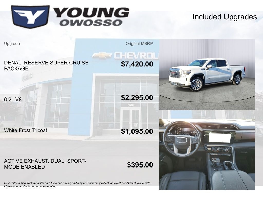 LOCAL TRADE!, CREW CAB!, 4WD, Sierra 1500 Denali, EcoTec3 6.2L V8, 10-Speed Automatic, 4WD, Jet Black Leather, 120-Volt Bed Mounted Power Outlet, 120-Volt Interior Power Outlet, 170 Amp Alternator, 2 Charge/Data USB Ports Inside Center Console, 2 Type-C Charge-Only Rear USB Ports, 2 USB Ports, 3 Years of Super Cruise/Digital Services by OnStar, Auto-Locking Rear Differential, Auxiliary External Transmission Oil Cooler, Bed View Camera, Chrome Header w/Signature Denali Chrome Grille, Chrome Recovery Hooks, Chrome Wheel To Wheel Assist Steps, Color-Keyed Carpeting Floor Covering, Deep-Tinted Glass, Denali Reserve Super Package, Electric Rear-Window Defogger, Floor-Mounted Center Console, Front Rain-Sensing Wipers, GMC MultiPro Power Steps, HD Surround Vision, Heated 2nd Row Outboard Seats, Heated Driver & Front Outboard Passenger Seating, Heavy-Duty Air Filter, Hill Descent Control, Hitch Guidance, Hitch View, In-Vehicle Trailering System App, Integrated Trailer Brake Controller, Keyless Open & Start, LED Cargo Area Lighting, Multicolor 15" Diagonal Head-Up Display, OnStar Services Capable, Perimeter Lighting, Power Door Locks, Power Front Passenger Windows w/Express Up/Down, Power Front Windows w/Driver Express Up/Down, Power Rake & Telescoping Steering Column, Power Rear Windows w/Express Down, Power Sliding Rear Window w/Rear Defogger, Power Sunroof, Preferred Equipment Group 5SA, Premium Bose 7-Speaker Sound System, Push Button Start, Rear Camera Mirror, Rear Cross Traffic Braking, Rear Pedestrian Detection, Rear Wheelhouse Liners, Remote Vehicle Starter System, SiriusXM w/360L Trial Subscription, Spray-On Pickup Bedliner w/GMC Logo, Steering Wheel Audio Controls, Super Cruise, Super Cruise Wrapped Steering Wheel, Technology Package, Theft Deterrent System (Unauthorized Entry), Trailer Camera Provisions, Trailer Side Blind Zone Alert, Trailering Package, Ultrasonic Front & Rear Park Assist, Universal Home Remote, Ventilated Driver & Front Passenger Seats, Wheel Locks (Set of 4) (LPO), Wheels: 22" x 9" Painted Aluminum, Wi-Fi Hotspot Capable, Wireless Charging.