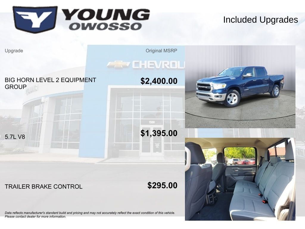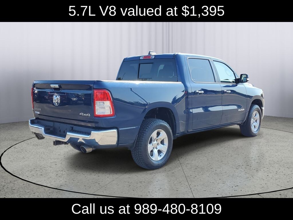 LOCAL TRADE!, CREW CAB!, 4WD, 1500 Big Horn/Lone Star, HEMI 5.7L V8 Multi Displacement VVT, 4WD, 115V Auxiliary Power Outlet, 115V Auxiliary Rear Power Outlet, 2 USB Full Function/Charge Only Media Hub, 400W Inverter, 8.4" Touchscreen Display, Air Conditioning ATC w/Dual Zone Control, Auto-Dimming Rear-View Mirror, Big Horn IP Badge, Big Horn Level 2 Equipment Group, Class IV Receiver Hitch, Cluster 7.0" TFT Color Display, Dampened Tailgate, Foam Bottle Insert (Door Trim Panel), Glove Box Lamp, Heated Front Seats, Heated Steering Wheel, Integrated Center Stack Radio, ParkSense Front/Rear Park Assist w/Stop, Power 4-Way Driver Lumbar Adjust, Power 8-Way Driver Seat, Power Adjustable Pedals, Power Heated Fold Away Mirrors, Quick Order Package 25Z Big Horn/Lone Star, Radio: Uconnect 4 w/8.4" Display, Rear Dome w/On/Off Switch Lamp, Rear Power Sliding Window, Rear Window Defroster, Remote Start System, Security Alarm, Single Disc Remote CD Player, SiriusXM Satellite Radio, Steering Wheel Mounted Audio Controls, Sun Visors w/Illuminated Vanity Mirrors, Universal Garage Door Opener.
