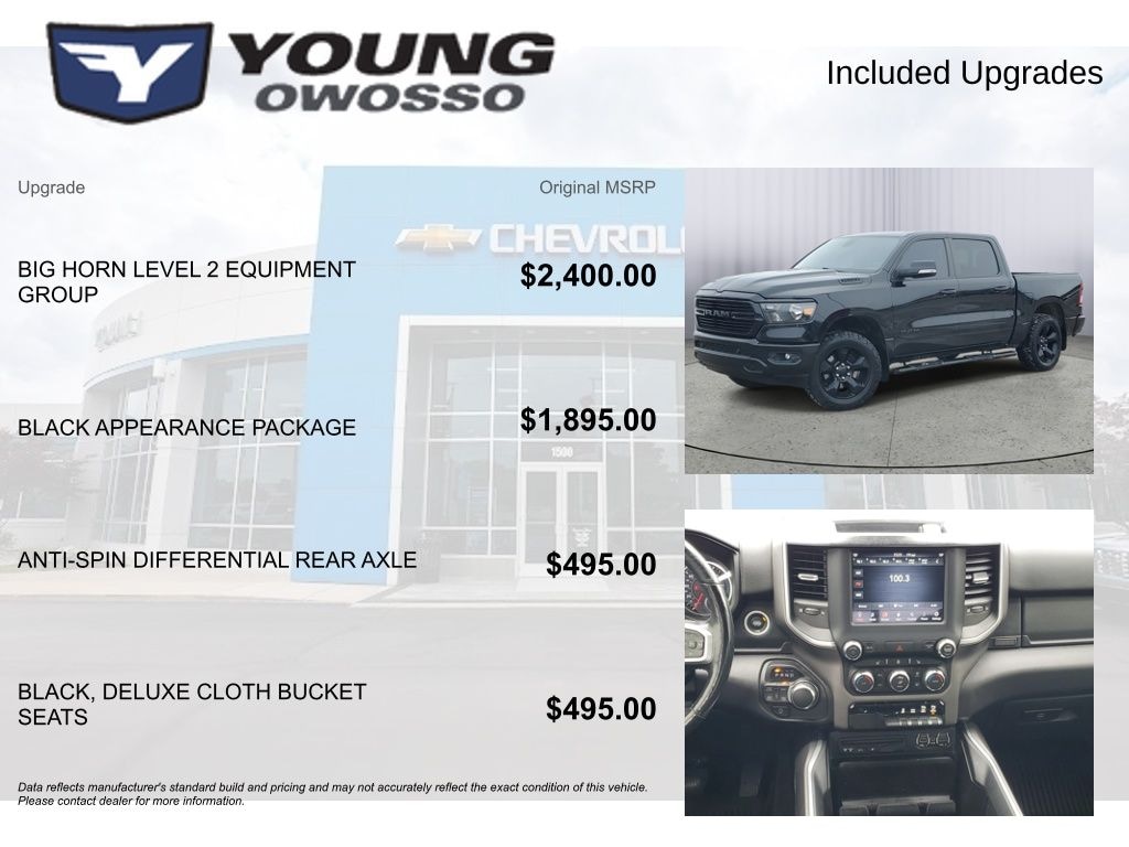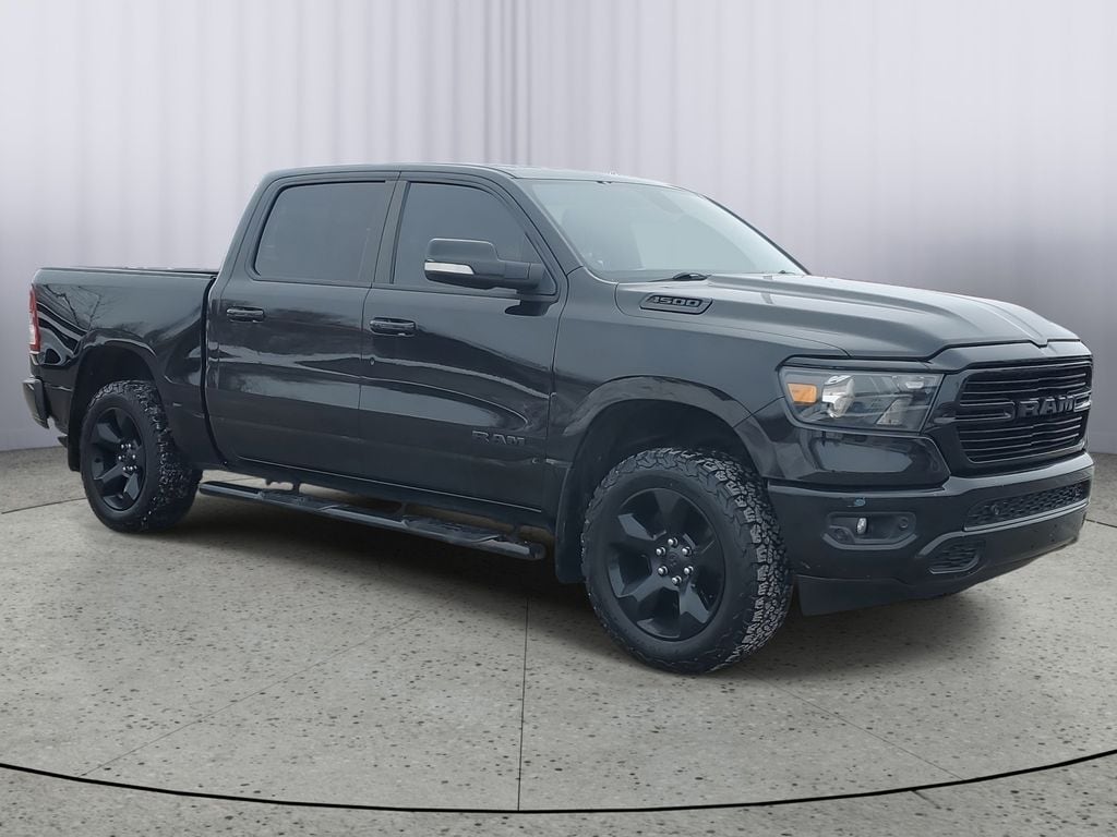 LOCAL TRADE!, CREW CAB!, 4WD, 1500 Big Horn/Lone Star, 3.6L V6 24V VVT, 4WD, 115V Auxiliary Power Outlet, 115V Auxiliary Rear Power Outlet, 2 USB Full Function/Charge Only Media Hub, 3 Rear Seat Head Restraints, 4 Way Front Headrests, 400W Inverter, 8.4" Touchscreen Display, Air Conditioning ATC w/Dual Zone Control, Auto-Dimming Exterior Driver Mirror, Auto-Dimming Rear-View Mirror, Big Horn IP Badge, Big Horn Level 2 Equipment Group, Black Appearance Package, Black Exterior Truck Badging, Black Headlamp Bezels, Black Interior Accents, Body Color Door Handles, Body Color Front Bumper, Body Color Rear Bumper w/Step Pads, Bucket Seats, Center Console Parts Module, Class IV Receiver Hitch, Cluster 7.0" TFT Color Display, Dampened Tailgate, Deluxe Cloth Bucket Seats, Dual Exhaust w/Black Tips, Exterior Mirrors Courtesy Lamps, Exterior Mirrors w/Memory, Exterior Mirrors w/Supplemental Signals, Foam Bottle Insert (Door Trim Panel), Front Seat Back Map Pockets, Full Length Floor Console, Glove Box Lamp, Grille B/Color Outline 1 Texture 2, Heated Front Seats, Heated Steering Wheel, Integrated Center Stack Radio, Manual Adjust 4-Way Front Passenger Seat, ParkSense Front/Rear Park Assist w/Stop, Power 4-Way Driver Lumbar Adjust, Power 8-Way Driver Seat, Power Adjustable Pedals, Power Heated Fold Away Mirrors, Power Heated Fold-Away Mirrors, Power-Folding Mirrors, Quick Order Package 23Z Big Horn/Lone Star, Radio: Uconnect 4 w/8.4" Display, Rear 60/40 Folding Seat, Rear Dome w/On/Off Switch Lamp, Rear Power Sliding Window, Rear Window Defroster, Remote Start System, Security Alarm, Single Disc Remote CD Player, SiriusXM Satellite Radio, Steering Wheel Mounted Audio Controls, Sun Visors w/Illuminated Vanity Mirrors, Universal Garage Door Opener, Wheels: 20" x 9" Cast Aluminum Black.